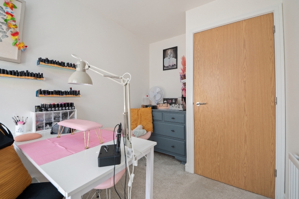 Upstairs, the sense of luxury continues. The spacious principal bedroom offers a calm retreat, complete with a built-in wardrobe and a beautifully appointed private ensuite bathroom, delivering an exclusive, hotel-style experience. A second generous double bedroom and a well-proportioned single bedroom provide ample space for the entire family. The main family bathroom impresses with high-end finishes, including full-height tiling, contemporary sanitaryware, and a heated towel rail for added comfort.
