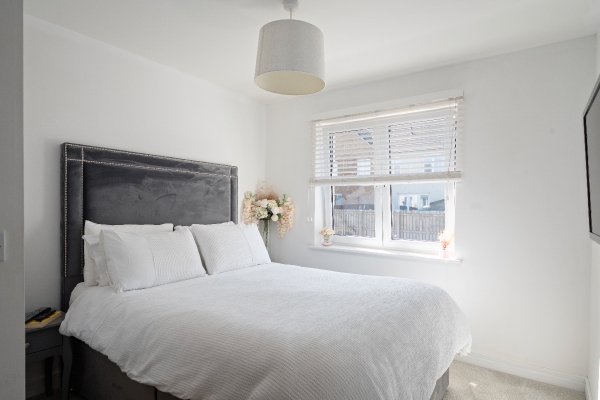 Step outside to discover a fully enclosed rear garden, thoughtfully designed for year-round enjoyment. A stylish decked area is ideal for al fresco dining and evening entertaining, while the low-maintenance artificial lawn creates a safe and enjoyable play area for children. Further features include a Hive wireless thermostat for intuitive climate control and enhanced energy efficiency. Ideally situated in the thriving town of Denny, this remarkable home benefits from excellent local amenities, highly regarded schools, and superb transport links—placing both Glasgow and Edinburgh within approximately 30 minutes’ reach.