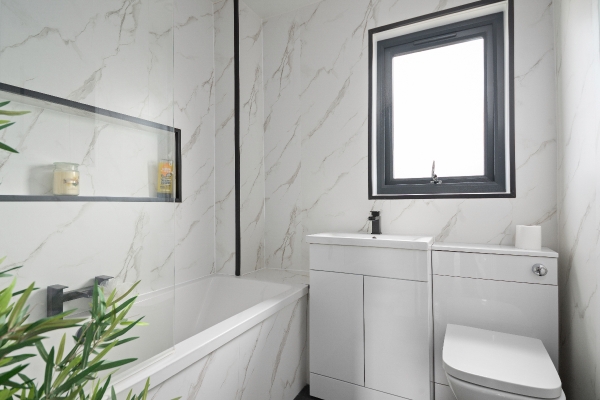 Upstairs, the master bedroom offers a peaceful retreat with built-in mirrored wardrobes and a recently renovated private en-suite shower room. The second double bedroom is also spacious and features mirrored wardrobes. A well-sized third bedroom provides flexibility as a child’s room, home office, or guest space. The newly fitted STUNNING family bathroom is fitted with a stylish three-piece suite, including a luxurious bath with rainfall shower above, perfect for unwinding after a long day.