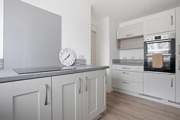 The stylish kitchen offers a sleek and modern space for cooking, with generous worktop space and storage — perfect whether you're preparing a quick breakfast before work or hosting friends for dinner.