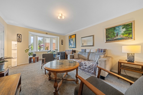 Internally, the property welcomes you with a bright entrance hall, featuring convenient access to the integral garage and a well-appointed guest W.C. The spacious lounge is flooded with natural light from a charming bay window, creating a warm and inviting atmosphere. To the rear, the elegant dining room opens onto the garden via French doors — perfect for entertaining or relaxed family meals.