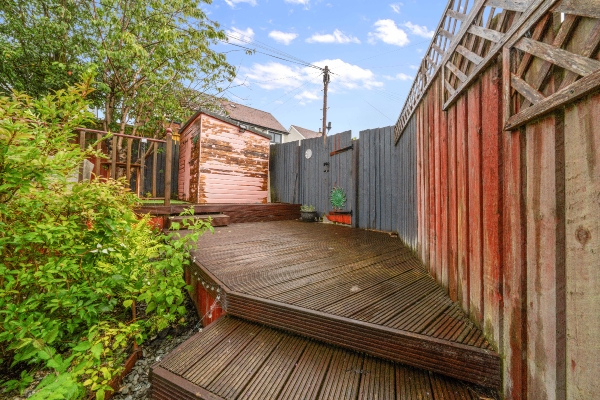 The professionally landscaped rear garden provides a peaceful retreat, complete with a feature raised deck — ideal for family gatherings, summer dining, or simply unwinding in the sun.