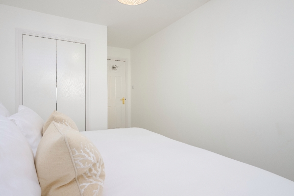 The second bedroom is also generously sized and beautifully presented, benefiting from fitted wardrobes that maximise storage while maintaining a clean and streamlined finish.