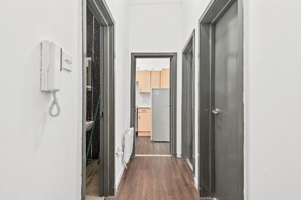 The property comprises of entrance hallway with large bedroom with fitted storage, kitchen with wall and floor mounted units and two large pantry style storage cupboards, spacious bright lounge with front aspect windows and three piece bathroom. The property benefits from electric heating. The block benefits from secure entry and a well maintained communal entrance.
