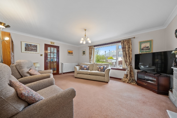 Upon entering, you are welcomed by a bright hallway leading to a spacious lounge, perfect for relaxing while taking in the stunning, uninterrupted views of the hills. The home features a functional kitchen with an adjoining dining room, ideal for entertaining, alongside a versatile rear extension that adds valuable extra living space. The accommodation is completed by two generously sized double bedrooms and a sleek, modern shower room. Externally, the property boasts well-maintained garden grounds to the front and rear, with the back garden offering a peaceful retreat complete with patio areas and established shrub-filled borders. With the added benefit of a detached single garage, this home perfectly balances convenience, comfort, and an enviable Highland-edge lifestyle.