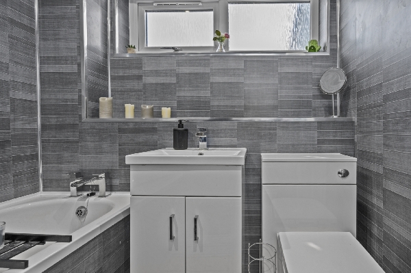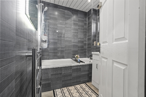 Upstairs, the property continues to impress with three well-proportioned bedrooms, each offering flexible accommodation suited to modern living. The family bathroom is finished to an excellent standard and features a beautiful contemporary suite with a shower over the bath, complemented by stylish tiling and modern fittings that create a refined, spa-like feel.