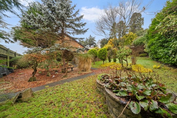 Externally, the property continues to impress. A mono block driveway accommodates at least four cars and leads to the integral double garage with electric door. The mature, secluded garden wraps around the home, featuring a charming patio area and extensive grounds that offer scope for future extension or even the creation of a separate plot, with potential access from the main road.