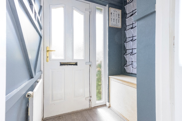 Internally, the property is presented in true walk-in condition, further enhanced by recently replaced windows and front and rear doors (2022) in a stylish anthracite finish. A welcoming entrance vestibule leads into a bright and spacious front-facing lounge, beautifully finished and flooded with natural light. This inviting space offers a comfortable setting for both relaxing and entertaining, with the staircase providing access to the upper level.