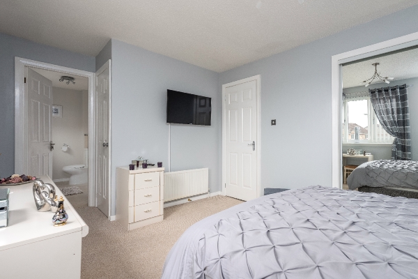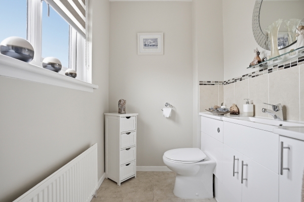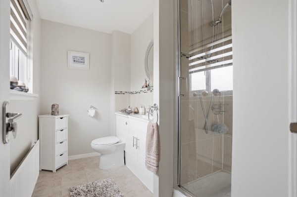 Upstairs, the property continues to impress with four well-proportioned bedrooms, all presented in fresh, neutral décor. The principal bedroom offers a peaceful and private retreat, complete with its own en-suite, creating the perfect space to unwind and recharge. The remaining bedrooms provide excellent flexibility for family living, guest accommodation or home working. The stylish family bathroom is beautifully presented, featuring a contemporary suite with a vanity unit providing excellent built-in storage, and a shower over bath, creating a practical and modern space.