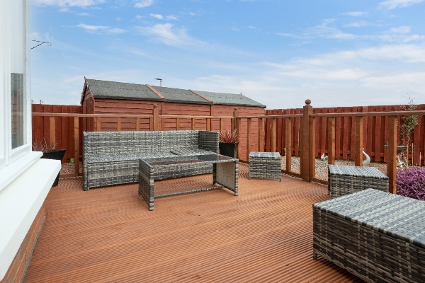 Externally, this home truly stands out. Occupying a generous corner plot, it benefits from expansive outdoor space rarely found in similar properties. The rear garden is both private and sun-catching, thoughtfully arranged to include a well-maintained lawn, a decked seating area ideal for relaxing, and a patio perfect for outdoor dining and entertaining — an ideal setting for both family life and social gatherings.