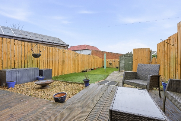 Externally, the professionally landscaped rear garden has been designed for enjoyment without the upkeep, featuring astro turf drying green, decked patio, bespoke bin storage and quality timber fencing. Recent upgrades include anthracite grey composite front and rear doors, new windows (2021), replacement fascia and guttering, and a 10-panel solar system (2022) helping to significantly reduce running costs despite the home’s electric heating system.