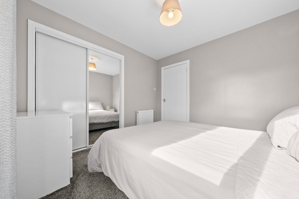 Both bedrooms are generously proportioned doubles, each featuring fitted wardrobes that maximise storage while maintaining a clean and uncluttered look. These peaceful retreats provide plenty of space for relaxation and personalisation, making them ideal for both rest and productivity. The bathroom is stylishly appointed with contemporary fixtures, creating a fresh and comfortable space for your daily routines.