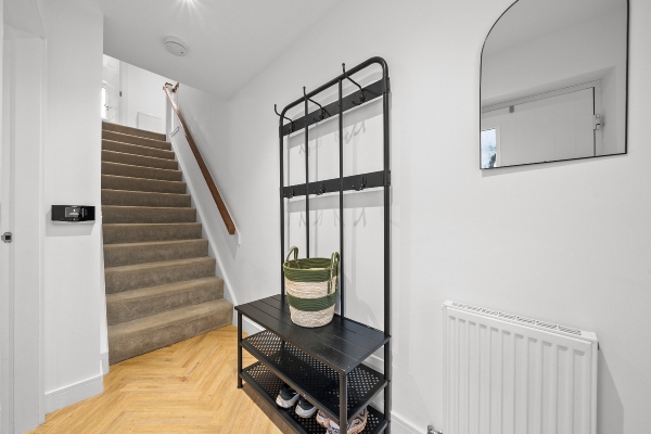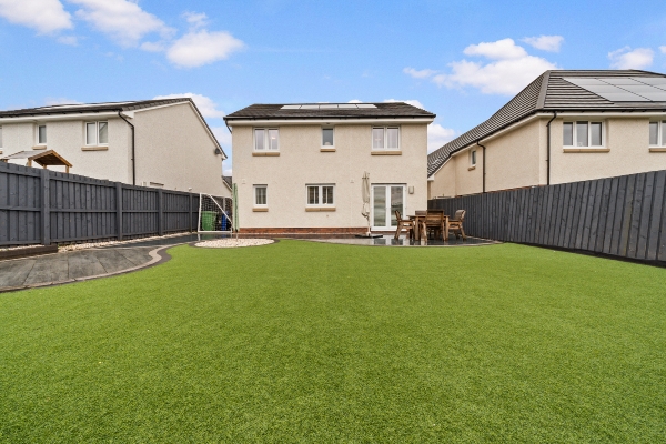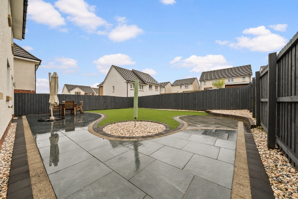 The appeal of 18 Swans Water extends well beyond its interior walls. The property boasts an outdoor space that has been curated with the same attention to detail as the living quarters. The fully enclosed rear garden is a private oasis, designed for both security and aesthetic pleasure. A large slabbed patio area provides the ideal foundation for outdoor furniture, perfect for al fresco dining during the warmer months, while a lush, manicured grass section offers plenty of space for play. A charming chipped seating area adds a final, picturesque touch, creating a tranquil environment where one can enjoy the fresh air in total privacy.