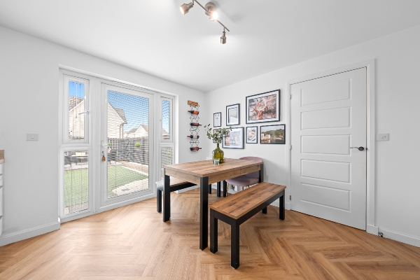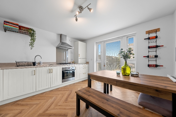 Upon entering, you are welcomed by a bright reception hall leading to a comfortable living room and a generous open-plan kitchen and dining area a true heart of the home that flows seamlessly out to the private rear garden. The ground floor is further complimented by a convenient utility area and WC. The upper level hosts three beautifully appointed bedrooms and a modern family bathroom complete with a crisp over-bath shower. Throughout the property, the fresh, contemporary décor is elevated by high-quality fitted floor coverings, all of which are included in the sale. Designed for modern comfort and efficiency, the villa boasts premium kitchen and bathroom fixtures, reliable gas-fired central heating, and full double glazing, ensuring a warm and inviting atmosphere. This is a rare chance to secure a turnkey home that balances sophisticated design with practical family living.