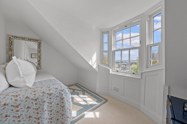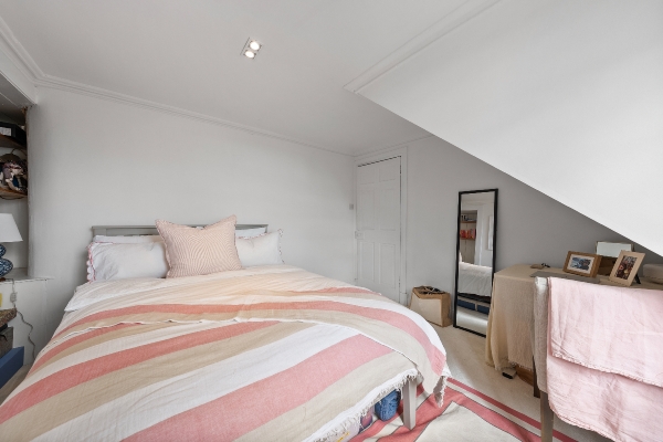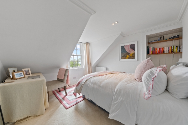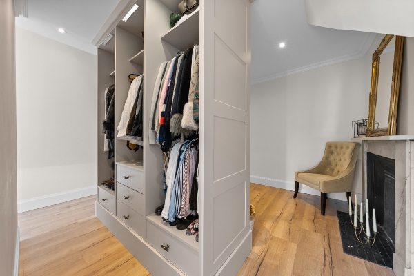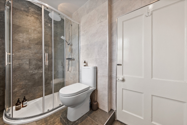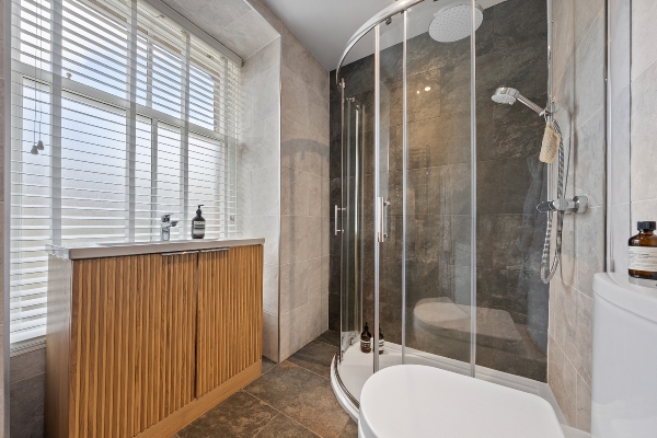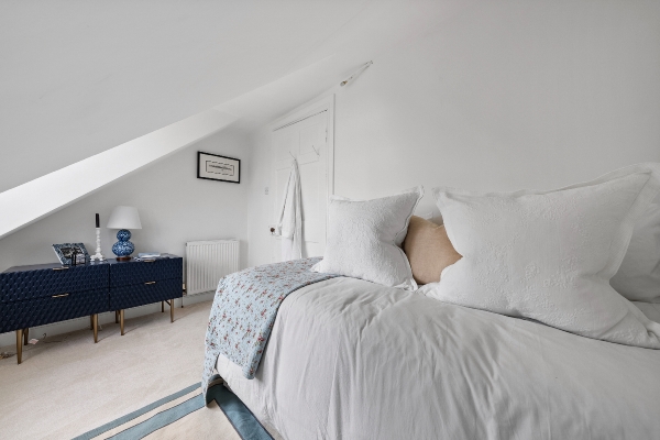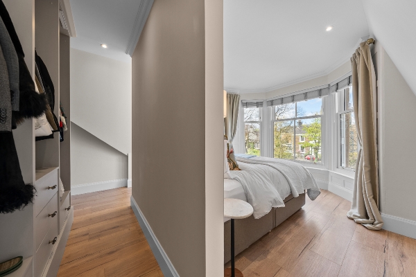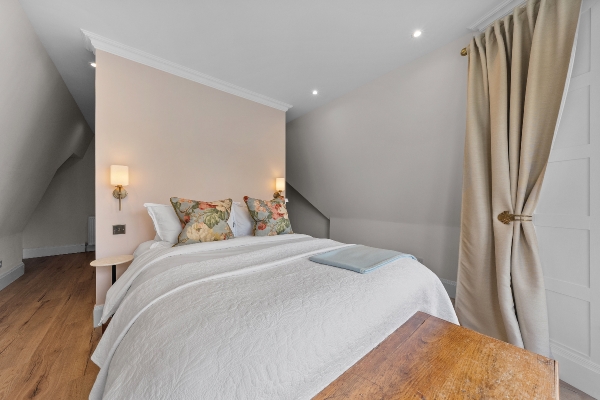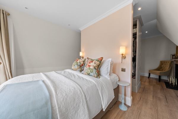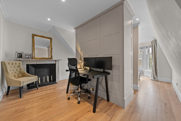 This thoughtfully designed accommodation is arranged over two levels, featuring three well-proportioned bedrooms that cater perfectly to modern lifestyle needs. The master suite stands out with its creative layout; a centrally positioned bed frames pleasant views over the street, while an elegant open walk-through wardrobe is situated neatly behind. Beyond this lies a versatile space, currently utilised as a home office, which offers the potential to be adapted into an extended dressing area. Such a configuration ensures exceptional flexibility, whether for family life, hosting guests, or dedicated home working. Completing the internal accommodation is a sleek, modern shower room, adding a touch of contemporary sophistication to this stylish and adaptable home.